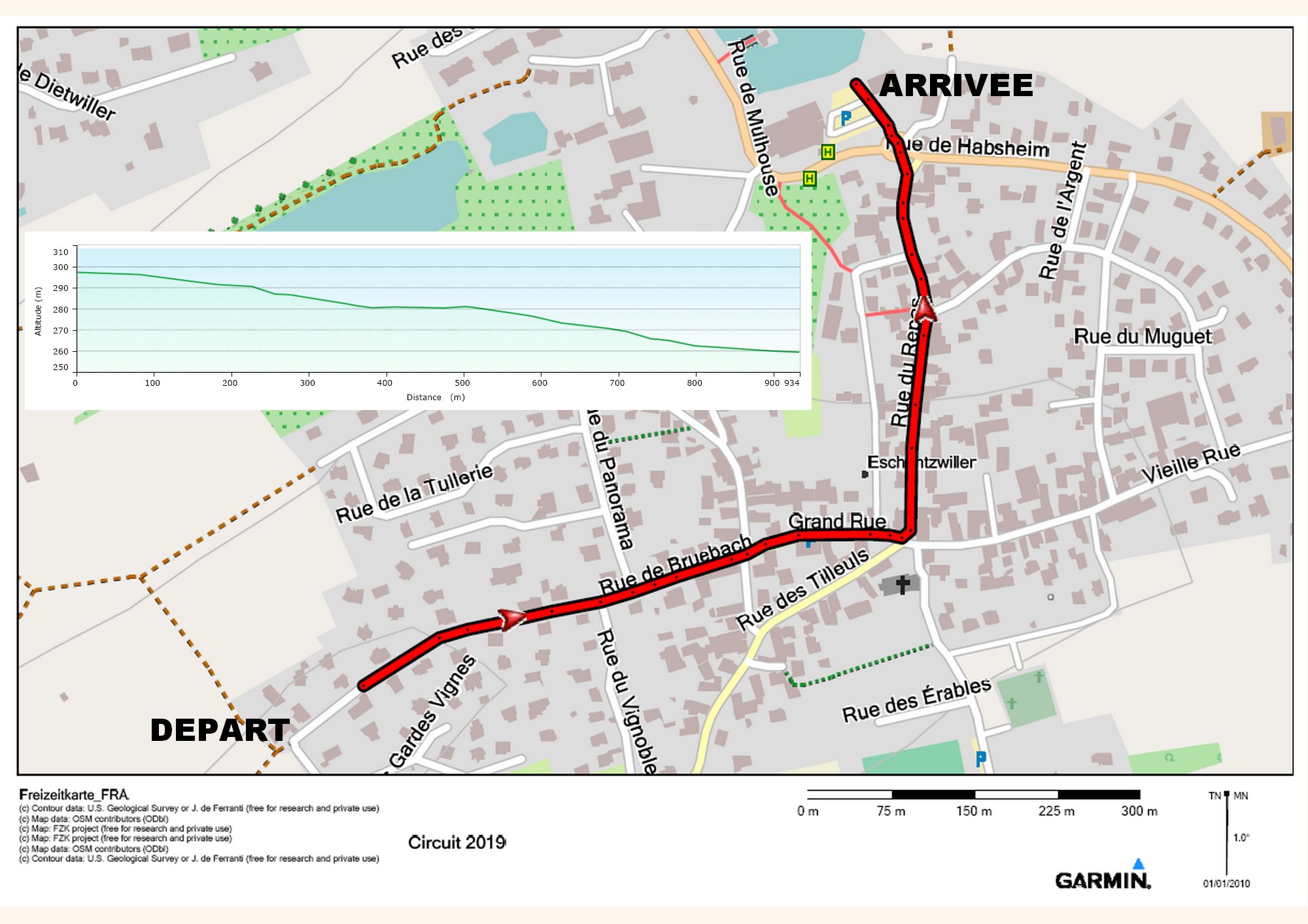 Plan du circuit et dénivelé pour la course de caisses à savon pour la fête des Crapod’Esch.